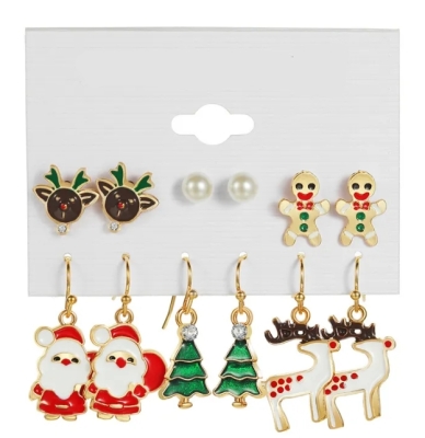 Kerst Oorbellen 6 Set Drie - Goud